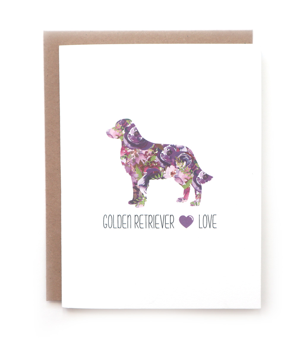 This Golden Retriever dog greeting card is part of our Posh Pet collection. Hand-painted in three different colors of beautiful watercolor floral, it honors this great playful breed in dazzling fashion. Our greeting cards are designed with beauty in mind, but a little twist of humor may be added in just for fun!